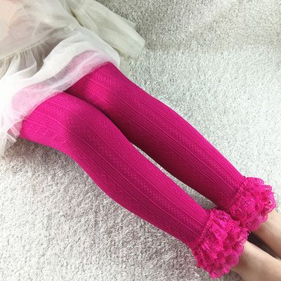 春款韓版女童打底褲 中大童麻花三層蕾絲花邊打底褲 |
