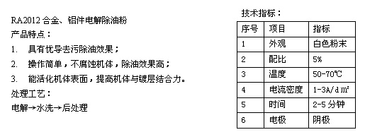 RA 2012合金、鋁件電解除油粉