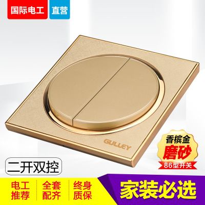 86型家裝圓形磨砂金二開雙控2開2控開關(guān)插座面板