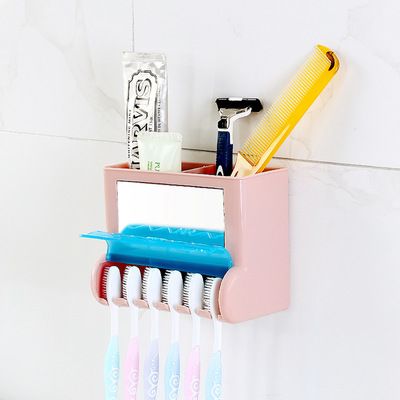 北歐五色創(chuàng)意強力粘貼式多功能牙膏牙刷架 浴室洗漱用品收納架