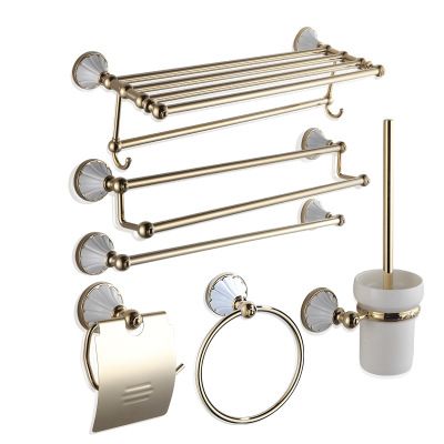 好掛浴室五金掛件套裝歐式浴巾架置物架單雙桿白金色噴塑毛巾架直