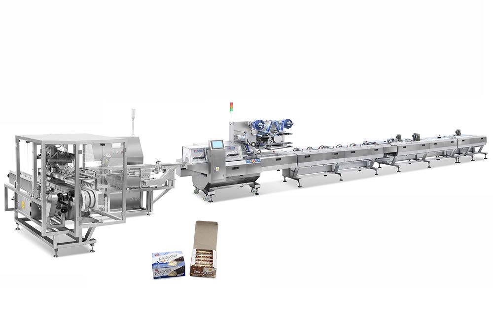 適用于各種長方形食品的自動排料、裝盒包裝。經(jīng)包裝后的成品外形美觀、裝盒數(shù)量準確、品質(zhì)穩(wěn)定。 特點: