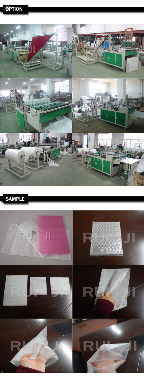 一、氣泡膜制袋機(jī)組用途: 該機(jī)適用于制作聚乙烯氣泡膜、復(fù)合珍珠棉等材料的五金、電子產(chǎn)品、小電器產(chǎn)品的塑料薄膜包裝袋。 二、氣泡膜制袋機(jī)組性能特點(diǎn):