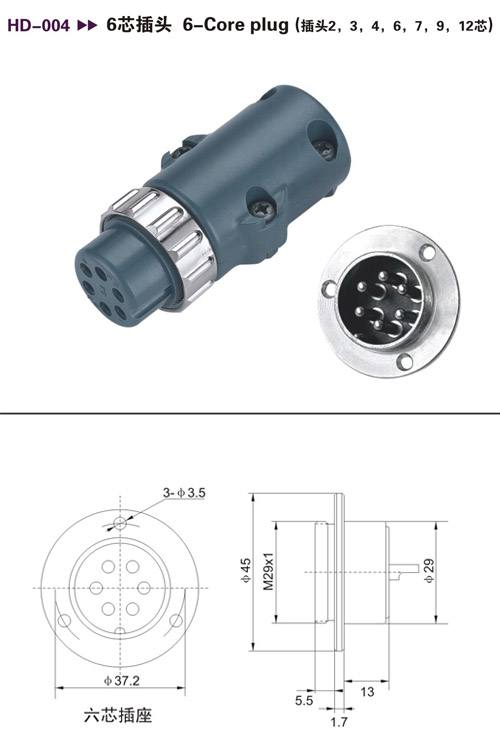 HD-004 6芯插頭(2、3、4、6、7、9、12芯)