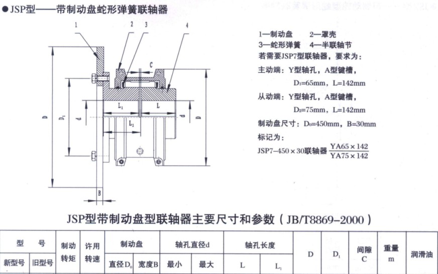JSP帶制動(dòng)盤型蛇形彈簧聯(lián)軸器