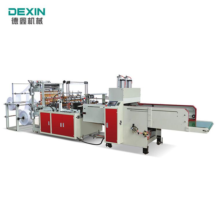 用途:該機適合制作高低壓背心袋(超市手提袋)、平口袋(服裝袋、鞋袋)、醫(yī)用一次性包裝袋、衛(wèi)生巾袋等(生產(chǎn)點斷垃圾袋可另增加收卷機及點段刀兩用裝置)。 性能及特點: 1、整機采用微機電腦控制,步進電機拖料(可選配伺服電機控制系統(tǒng))。 2、任意定長,步長光電跟蹤,準確,平穩(wěn),丟標自動停機,送料采用光電控制。 3、自動計數(shù)及可設(shè)定任意數(shù)報警。 4、自動恒溫使袋口封合牢固,平整。 5、無印刷時可四道放料兩道制袋。 |