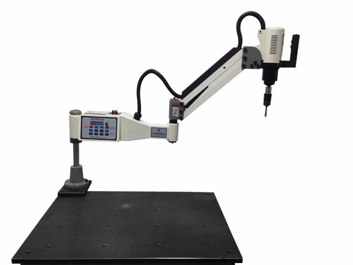 電動攻絲機產(chǎn)品描述: 新型電動攻絲機采用220V單相交流伺服電機,精密減速機構(gòu),金屬按鍵 薄膜按鍵可選,連續(xù) 點動可選,操作簡便。靜音、 平穩(wěn)、 節(jié)電,高速低扭矩 、低速高扭矩。具過壓、過流、過載保護。 電動攻絲機主要技術(shù)參數(shù): 電機功率:1200W 最高轉(zhuǎn)速:150轉(zhuǎn)/分鐘 扭 矩:250N.M 攻絲能力:M8-M30 工作半徑:1150mm二臂,1500mm 1900mm三臂 馬達重量:8KG 馬達總長:360 mm 設(shè)備配件: 伺服電機(含減速機構(gòu))1套 攻絲機架1套 控制盒1套 扭力夾頭10只: M8 M10 M12 M14 M16 M18 M20 M22 M24 M27 (或可根據(jù)需要選配) 適用范圍:適用于所有機械制造行業(yè),高效,省時、省力、不易爛牙。 “W”型 配備萬向頭實現(xiàn)垂直、水平或各個角度攻絲 攻絲機可直接固定在工作平面上,也可選配我司工作臺或磁座 |